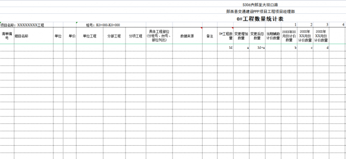 “0#”臺(tái)賬按單位、分部、分項(xiàng)工程劃分標(biāo)準(zhǔn)編制,可以將計(jì)量支付與質(zhì)量檢驗(yàn)評(píng)定有機(jī)結(jié)合起來(lái),這樣可以使質(zhì)檢、測(cè)量、實(shí)驗(yàn)、計(jì)量等部門(mén)的內(nèi)業(yè)工作都在同一個(gè)規(guī)則下進(jìn)行,提高了整個(gè)項(xiàng)目(合同段)內(nèi)業(yè)管理的效率。